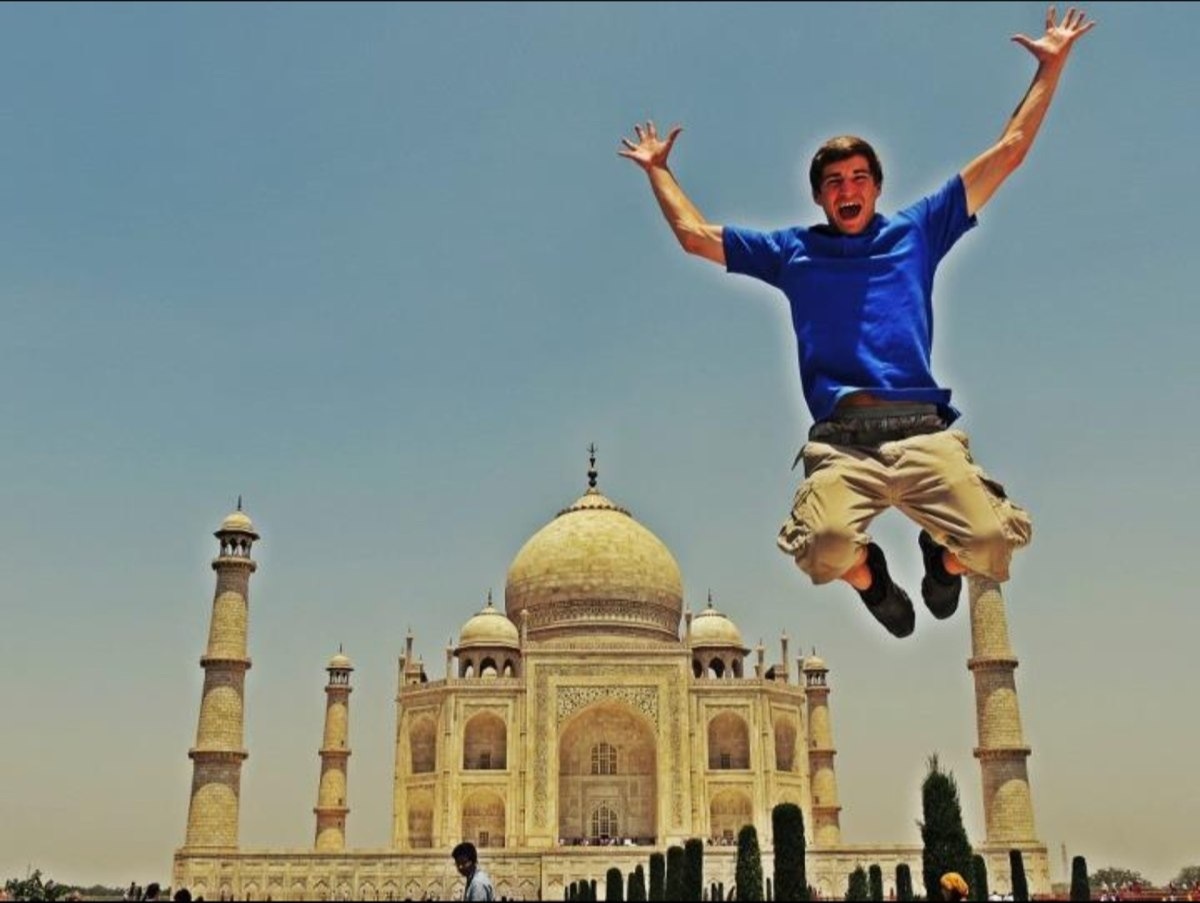 Austin looks like Aladdin at the Taj Mahal…without the rug.