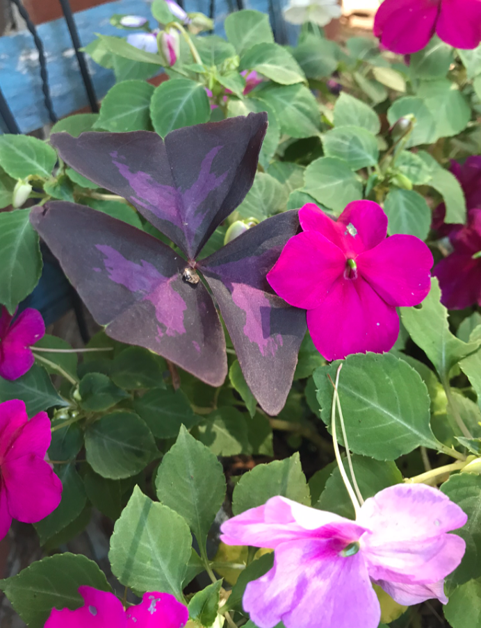 I love when things that don’t appear to ‘belong’ merely add beauty to their surroundings. Yeah, some things don’t fit–impatiens and shamrocks aren’t normally found in the same pot.